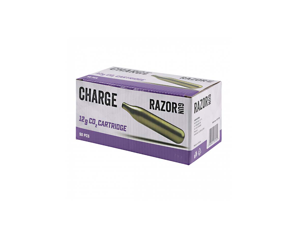Capsula Co2 Razor 12g pentru replici arme airsoft pe baza de aer comprimat.
