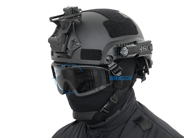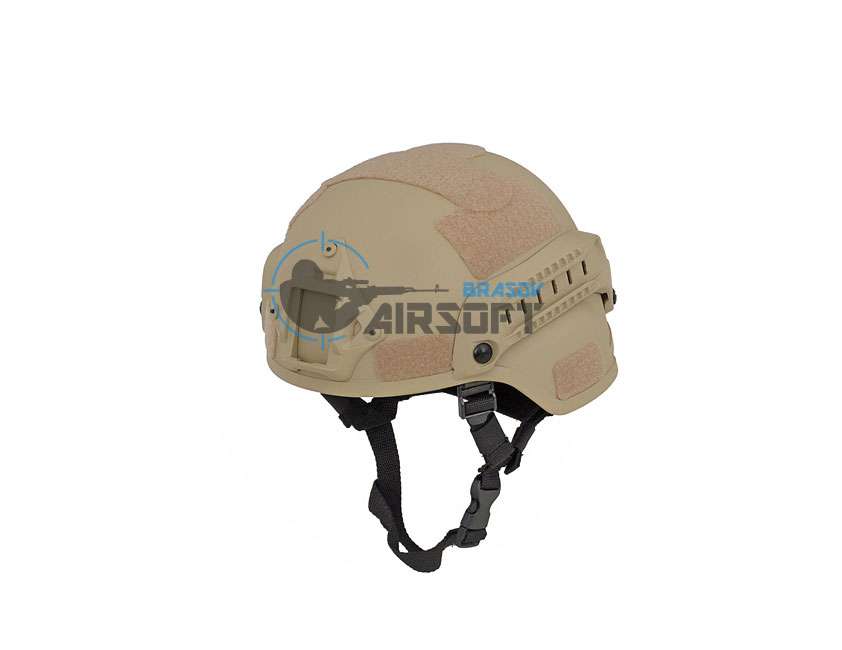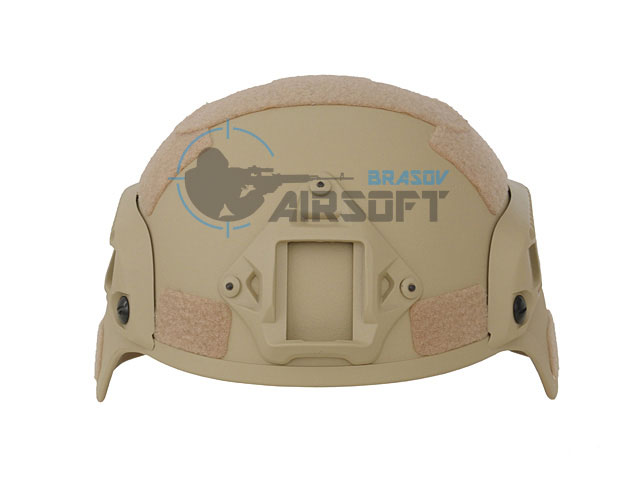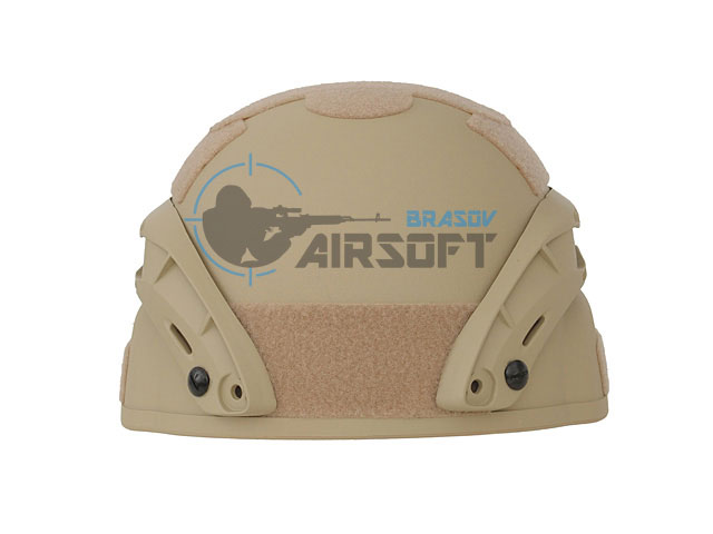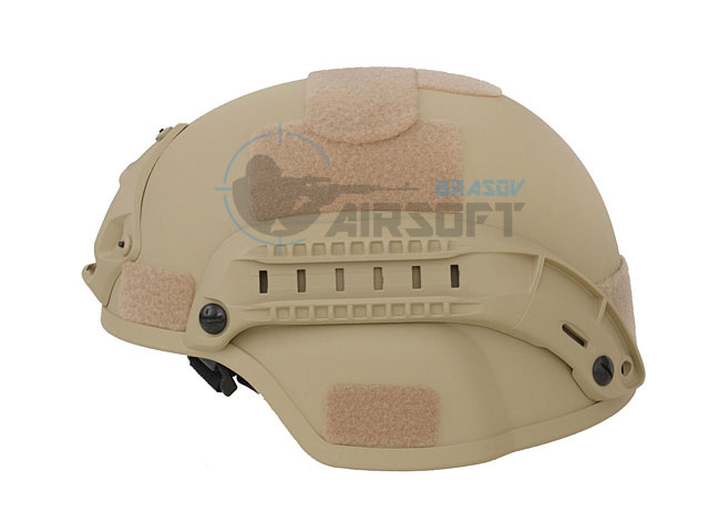 Casca Spec-Ops Mich ultra-usoara Tan– 8Fields este fabricata din plastic durabil, iar pe cele doua sine laterale aveti posibilitatea de a monta accesorii airsoft precum protectii auditive si lanterna tactica