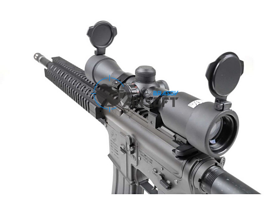 Luneta 4X32 Swiss Arms cu reticul iluminat are corpul realizat dintr-o combinatie de materiale rezistente: polymer si metal. Este prevazuta cu capace de protectie de tip flip up.